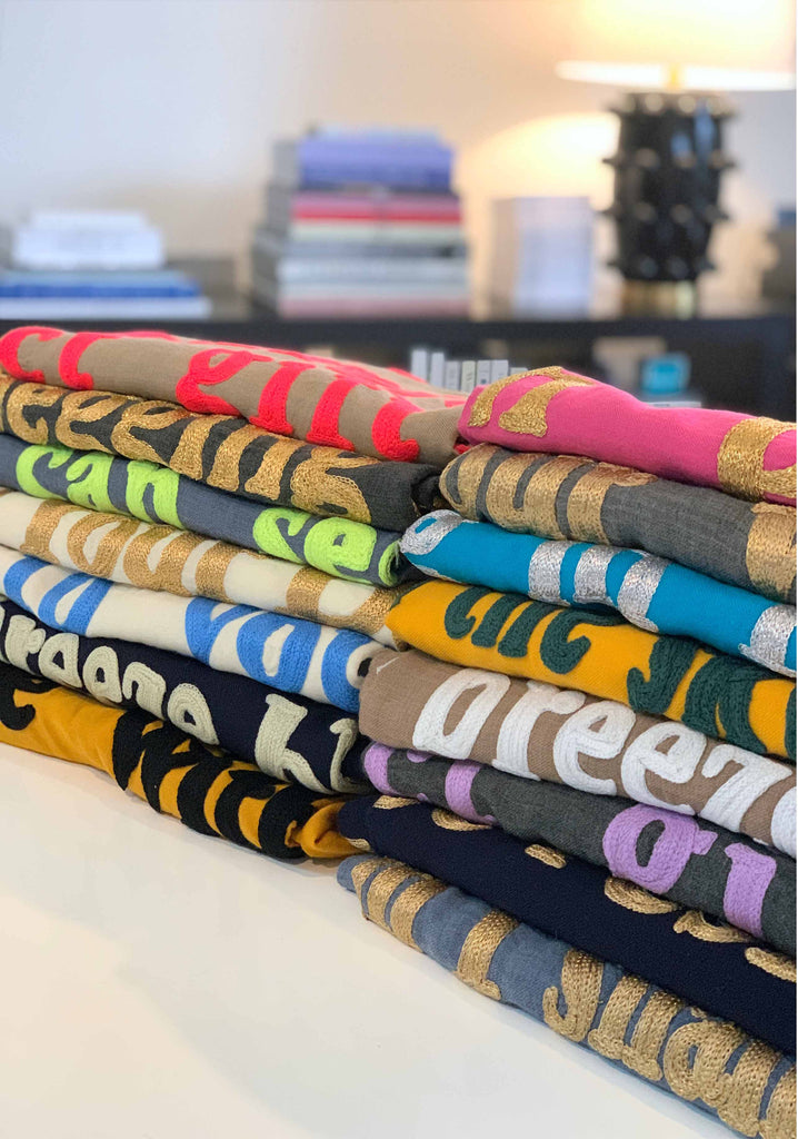 Honest to goodness girl crush. This designer exudes sparkly grace and had us in tears within minutes. A South African designer who lives between Cape Town, Paris and Delhi. Her handmade pieces are fair-trade and employ women who are widows or HIV positive to embroider and complete the finishing touches. This workroom is one of the only ones in the area that have salary based employees. Sometimes the workers have days when they are too weak or ill to work but need a consistent income. Namaste.