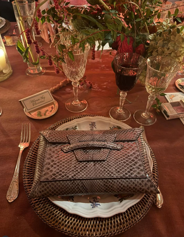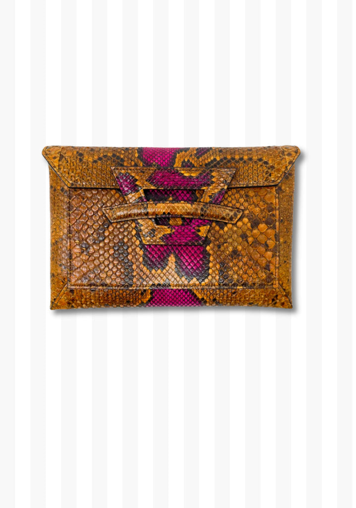 Hand painted envelope clutch. Water snake. Suede interior. Tuck flap.
