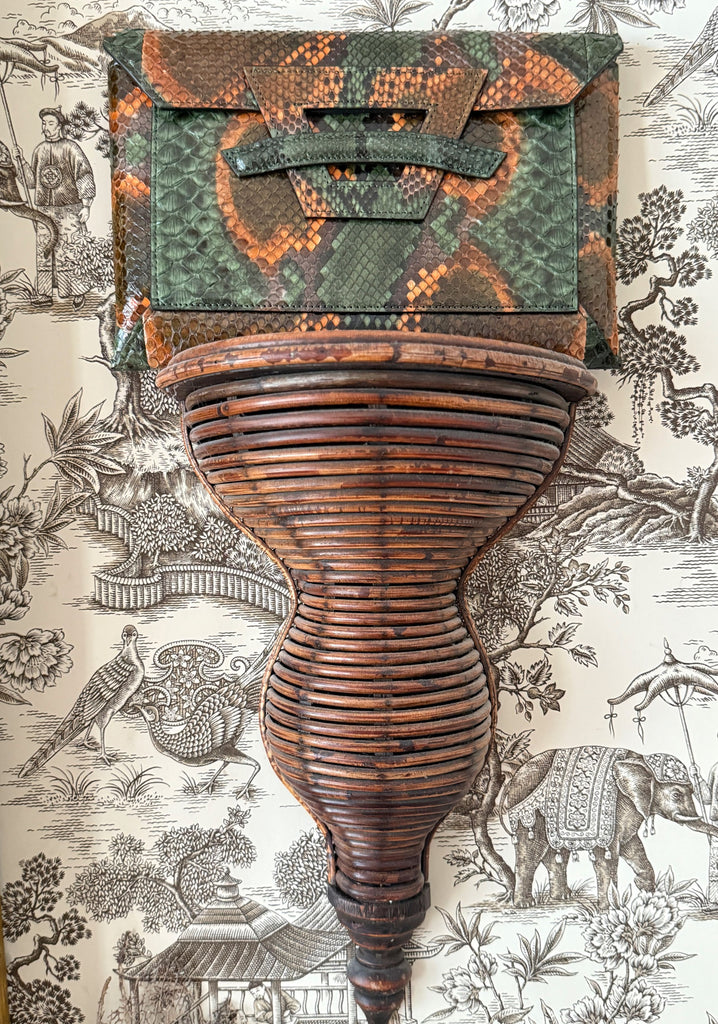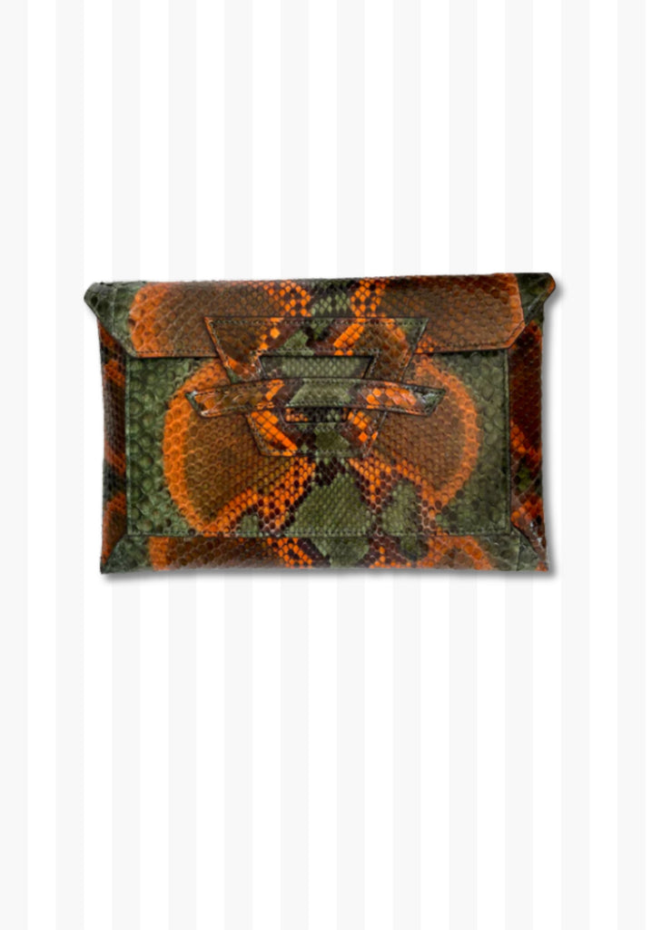Hand painted envelope clutch. Water snake. Suede interior. Tuck flap.