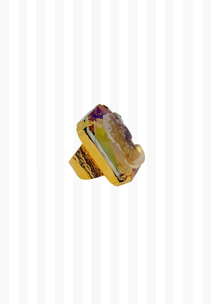 Adjustable brass plated ring. 1.5" x 1" Chunky & So good.